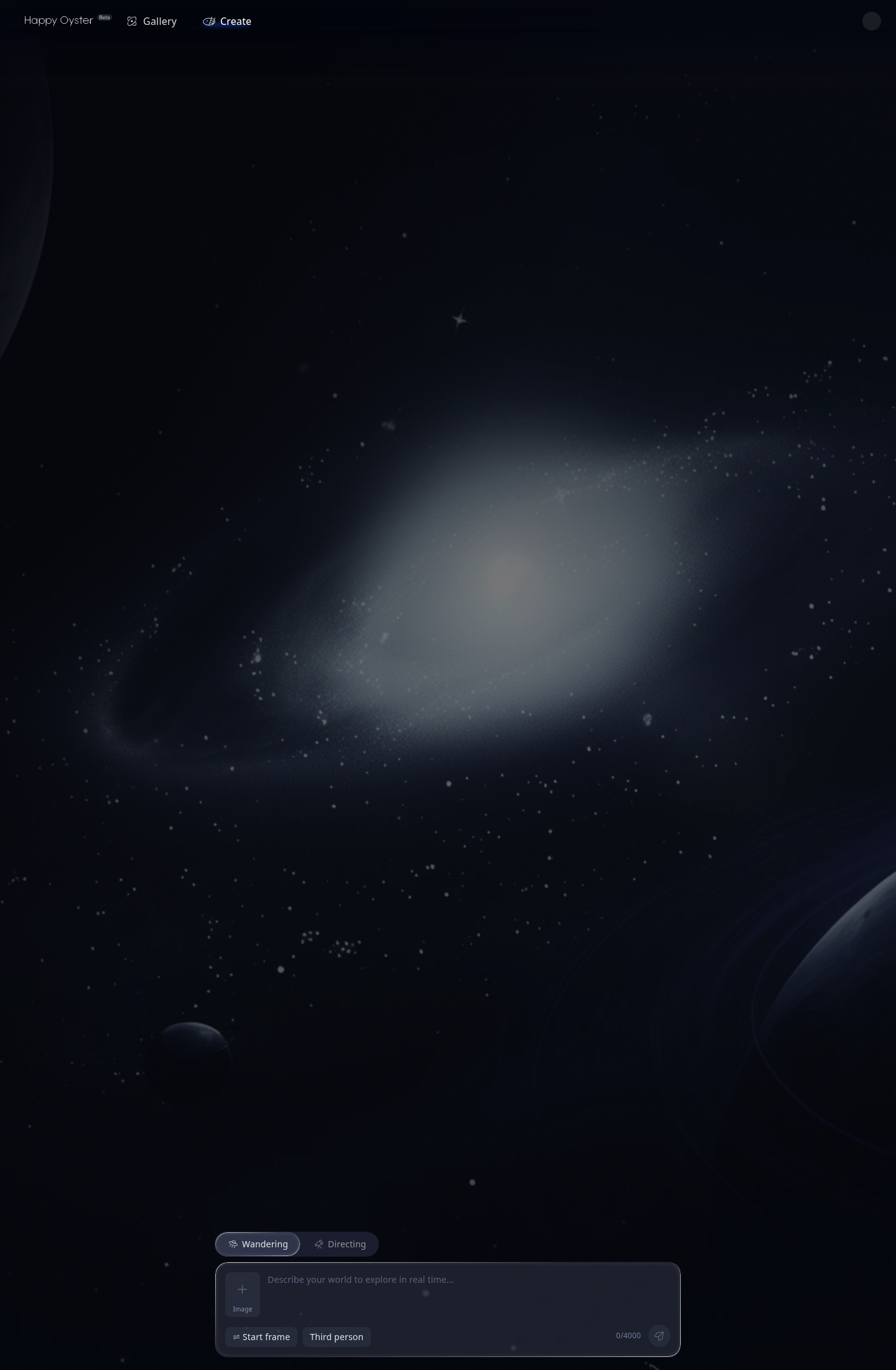Once the gate is cleared, the create surface becomes available. That is where most first-time users make their second mistake: they assume the tool wants a generic AI video prompt. It does not. Happy Oyster is much more sensitive to whether you are trying to discover a world or direct a scene inside one.